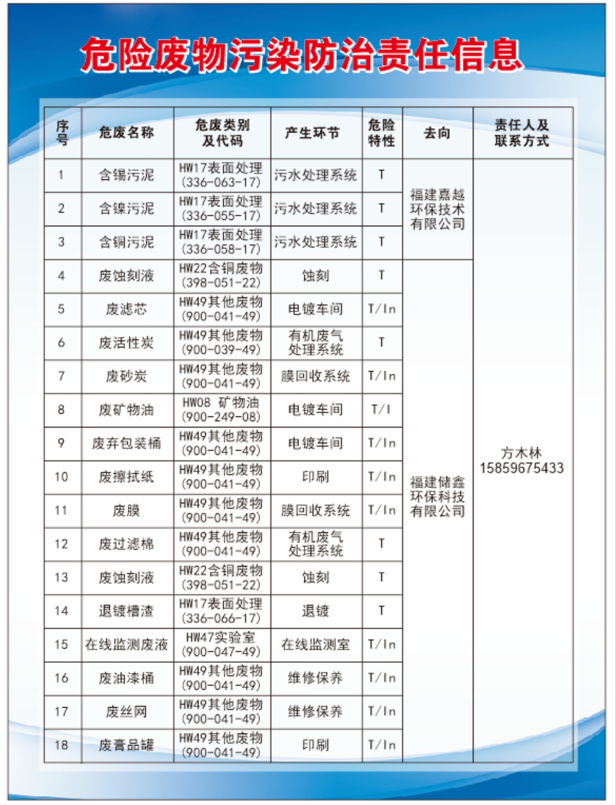 危險廢物污染防治責任信息(廈門)