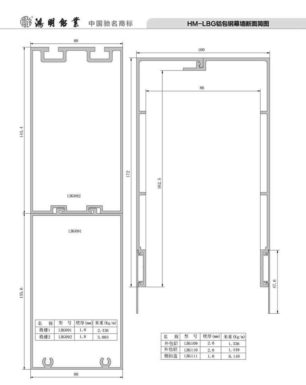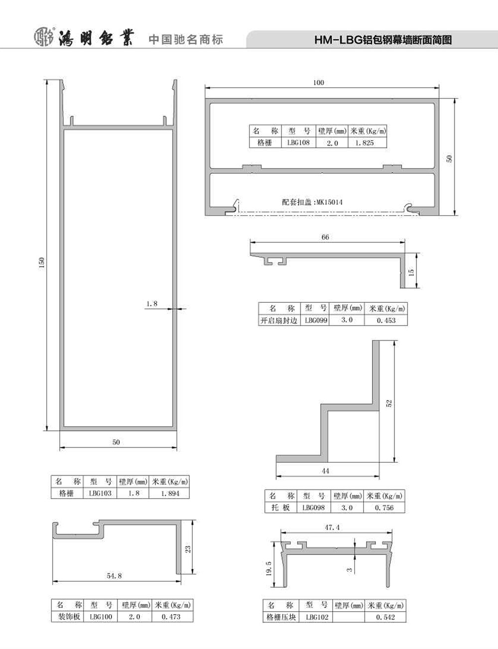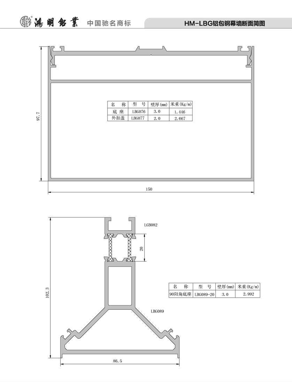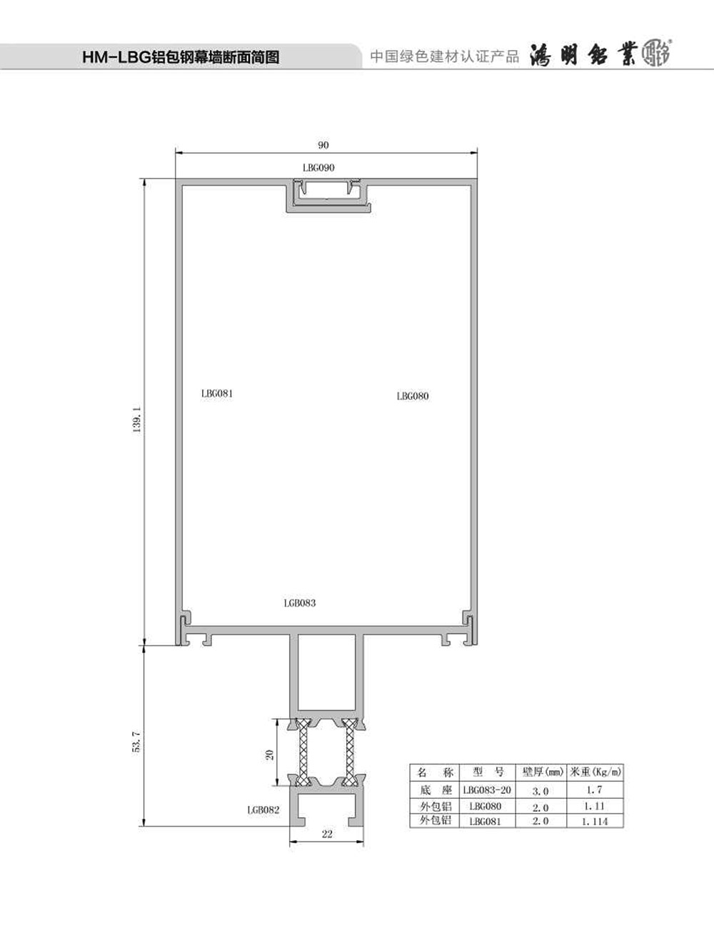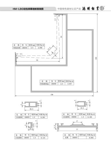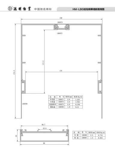 HM-LBG鋁包鋼幕墻斷面簡圖